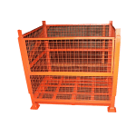 Cages are available with a variety of mesh sides and in different gauges and pitches, with solid or exmesh floors, fork loops or full fork guides, folding or demountable sides and with the option of drop front gates.